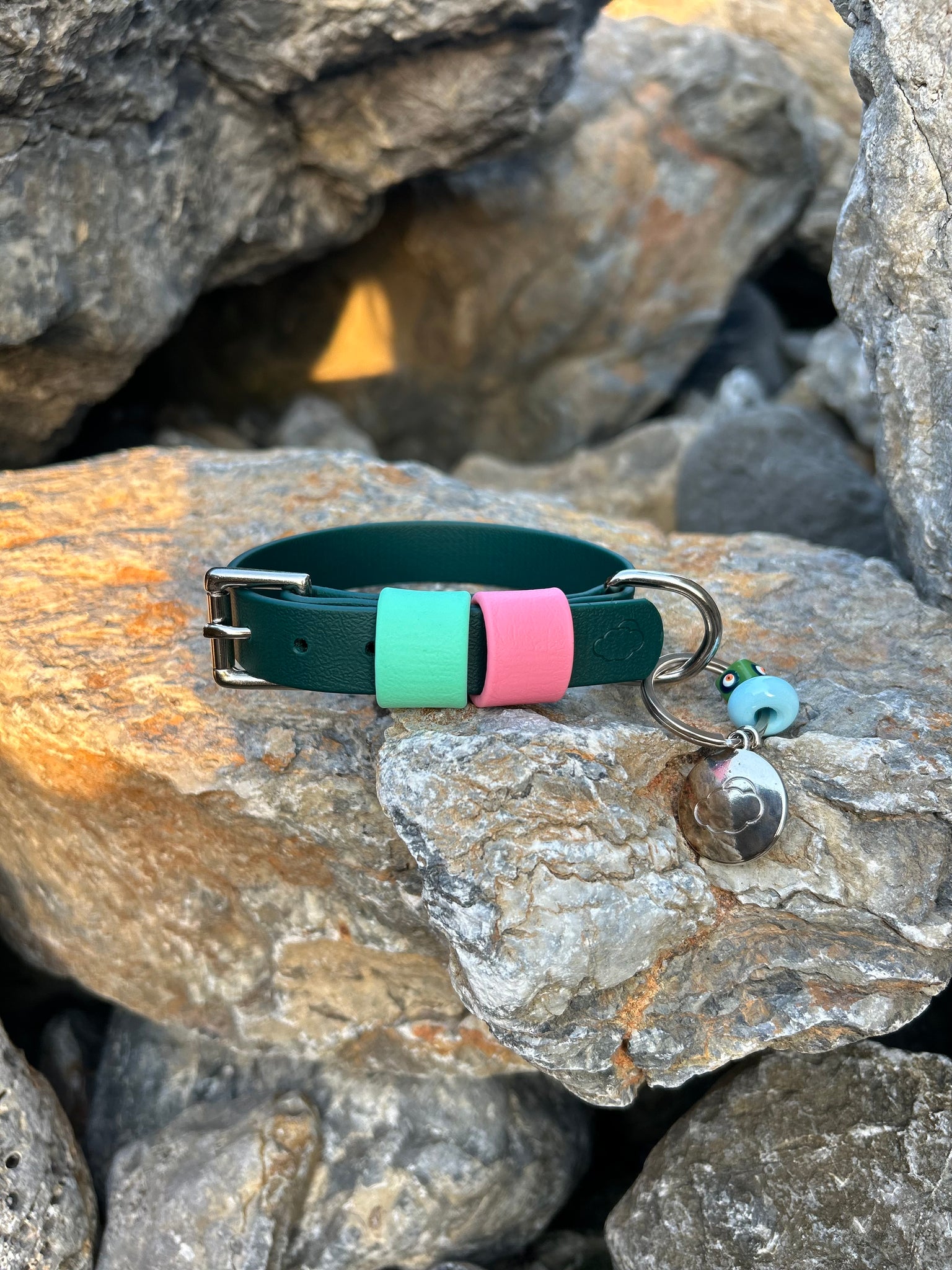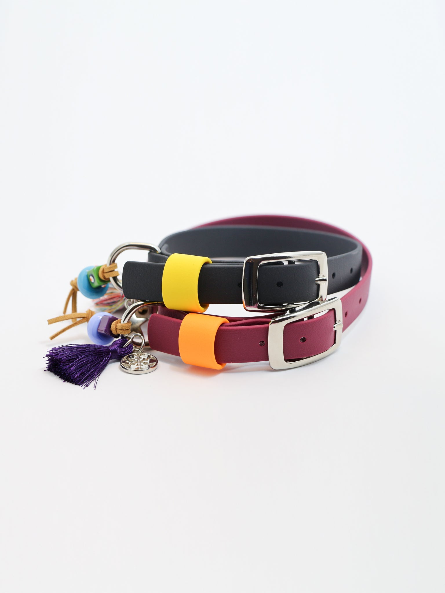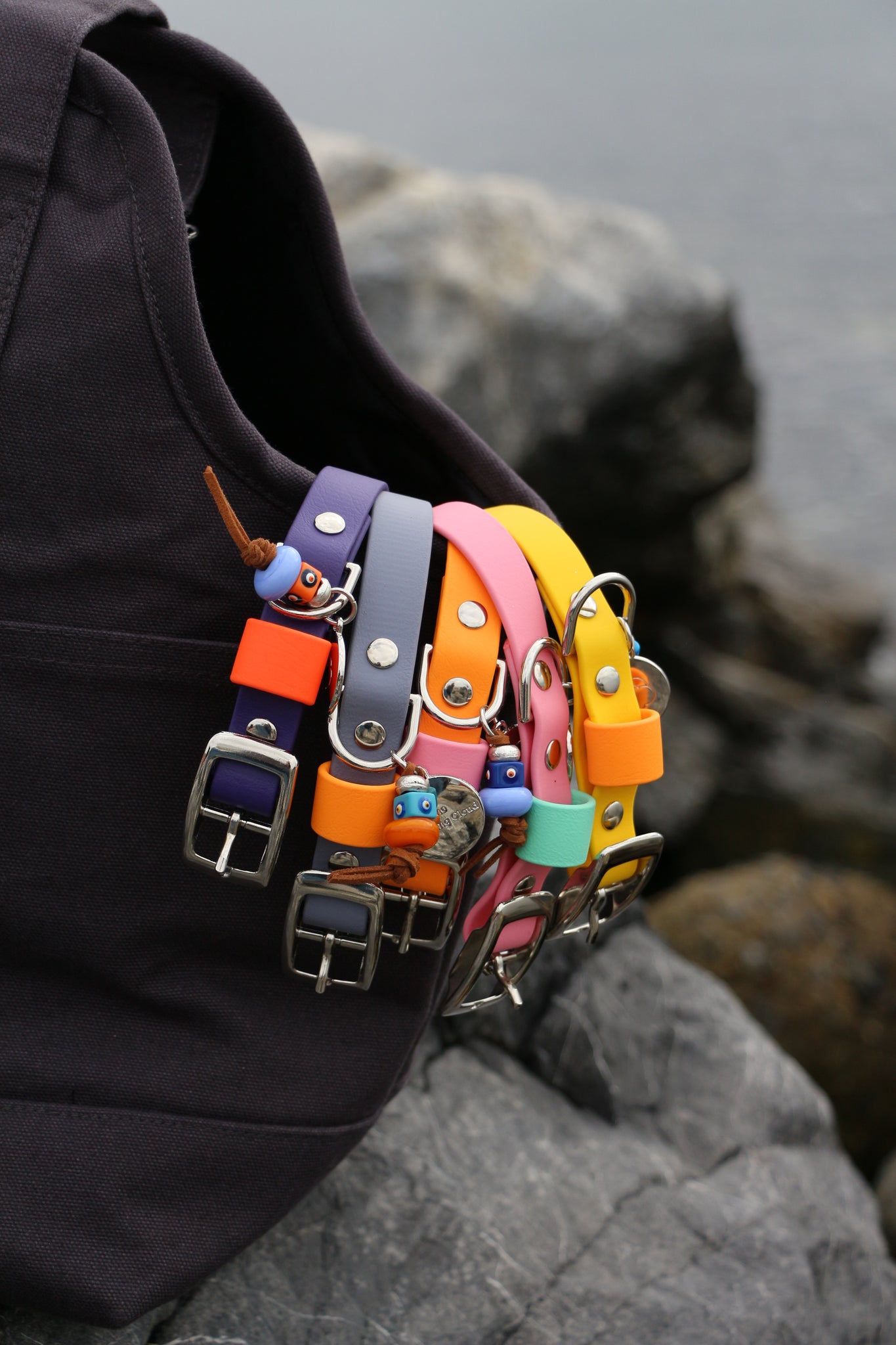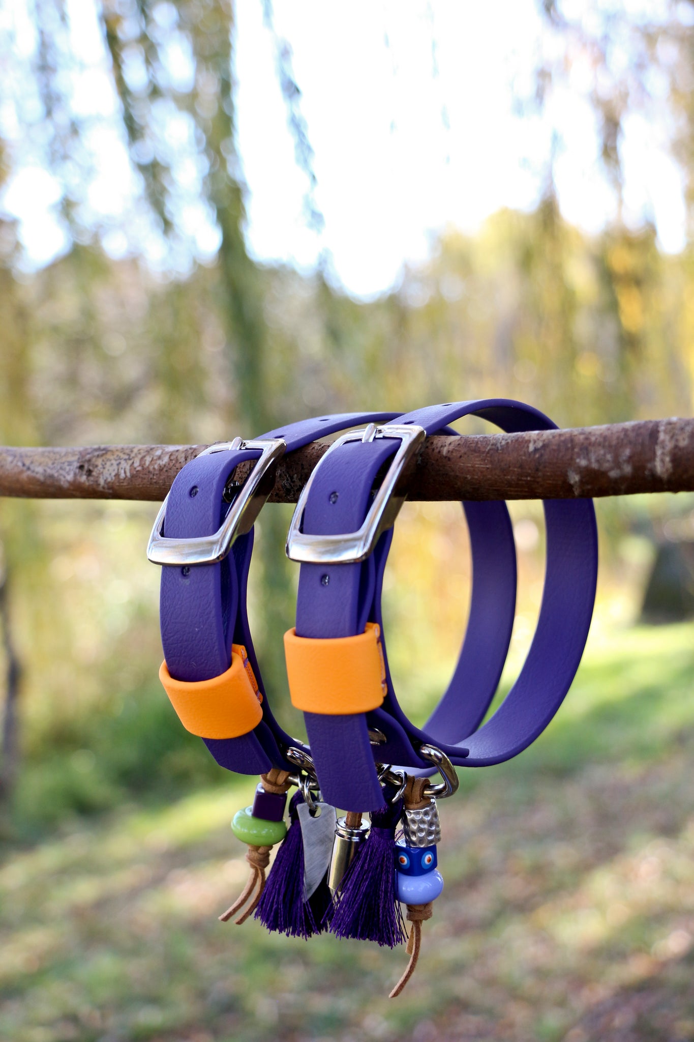 Biothane does not contain any animal substances. It looks very similar to leather in terms of look and feel. It has a nice grip and remains flexible even in extreme temperatures. It does not fade even when exposed to sunlight. It does not absorb moisture when exposed to water. It is easy to clean.