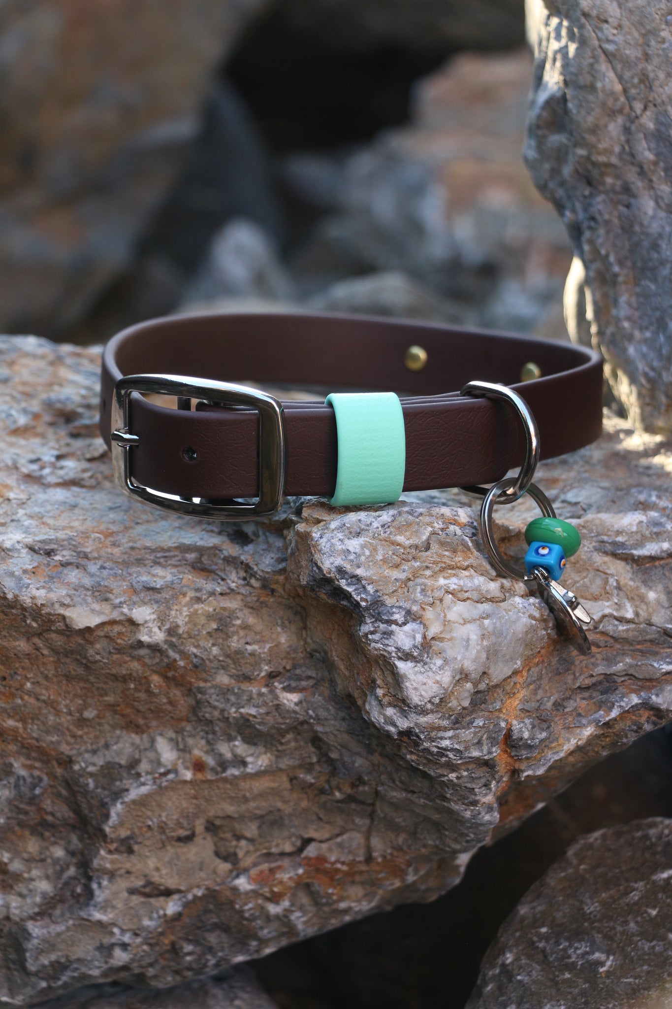 Biothane does not contain any animal substances. It looks very similar to leather in terms of look and feel. It has a nice grip and remains flexible even in extreme temperatures. It does not fade even when exposed to sunlight. It does not absorb moisture when exposed to water. It is very easy to clean. You can easily clean it with water or with damp piece of cloth.